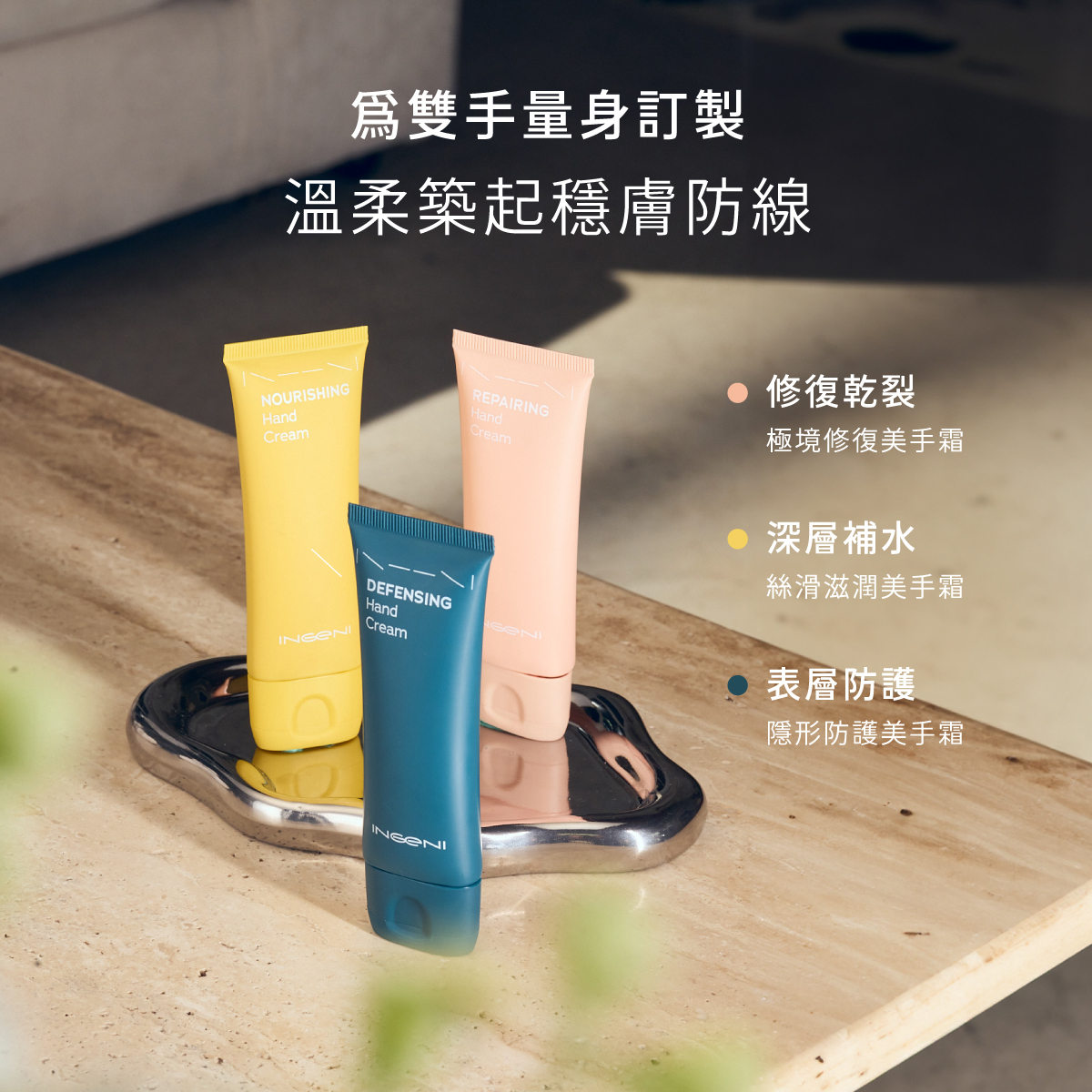 - 當需要頻繁洗手、面對外界刺激時:「隱形防護美手霜」是最溫柔的防線,像一件時髦的機能雨衣。 鎖住滋養的同時,也阻絕外界傷害。