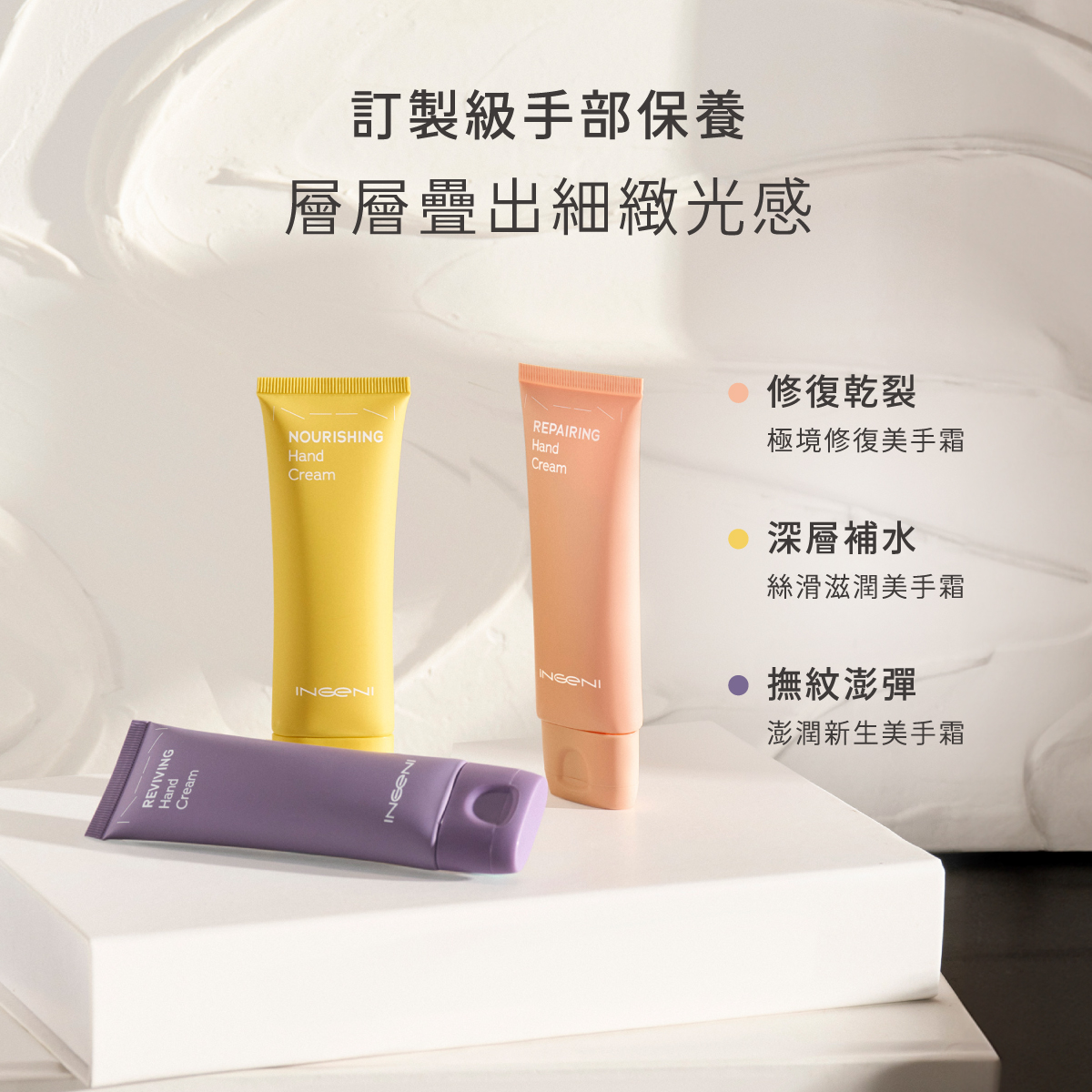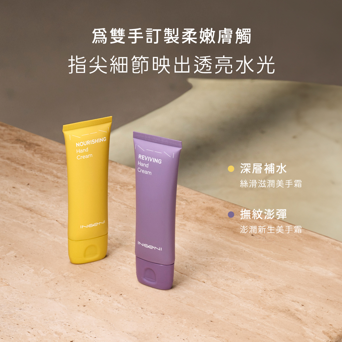- 日間質感:想要深層養護時選「絲滑滋潤」;想要表層緊緻時選「澎潤新生」,隨時保持手部的細緻質感。